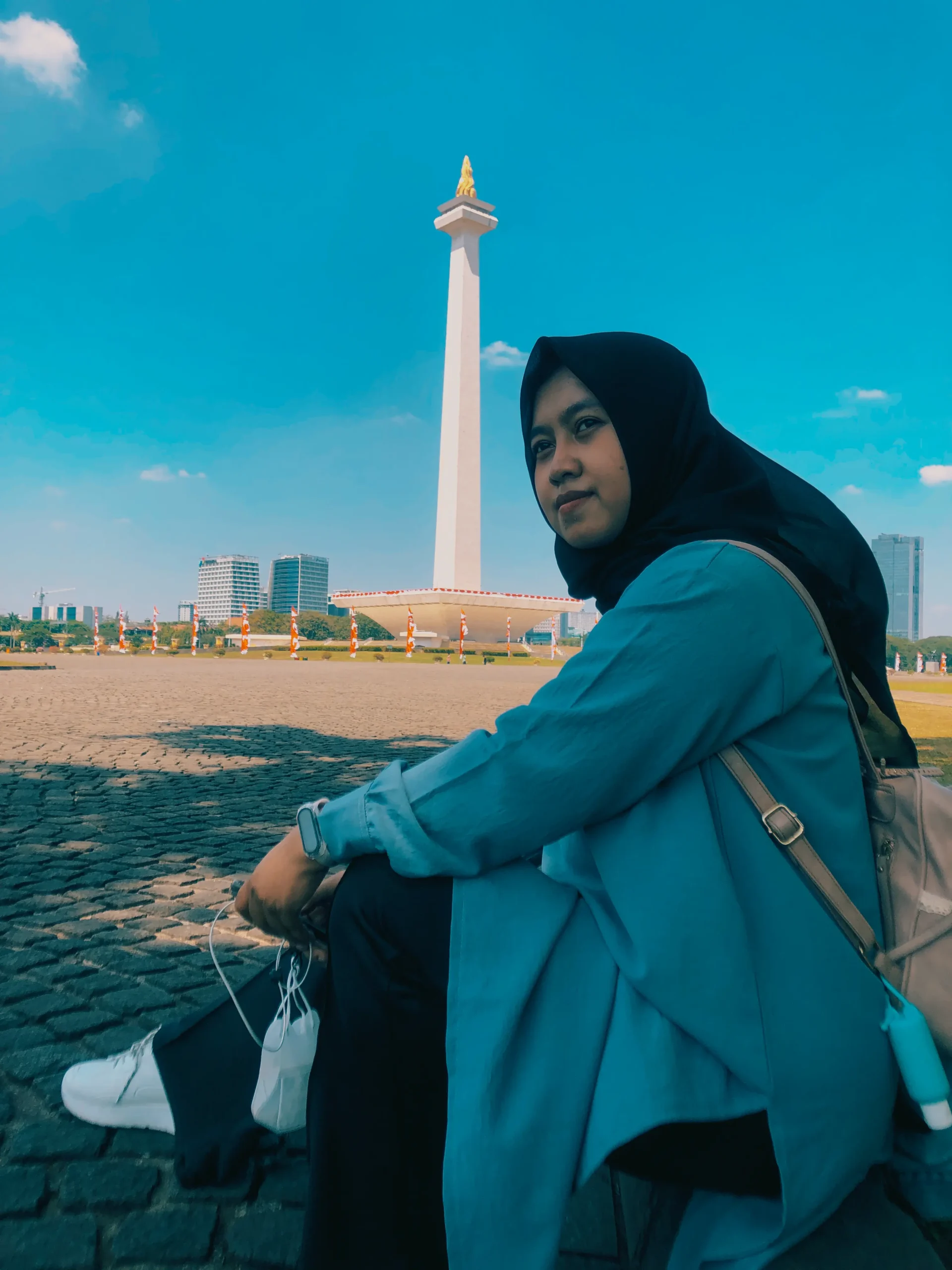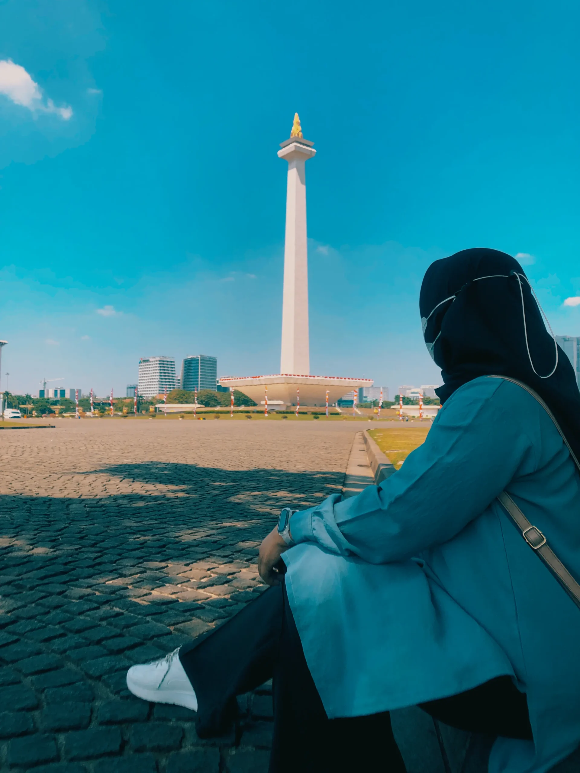 We're beside Monas Tower