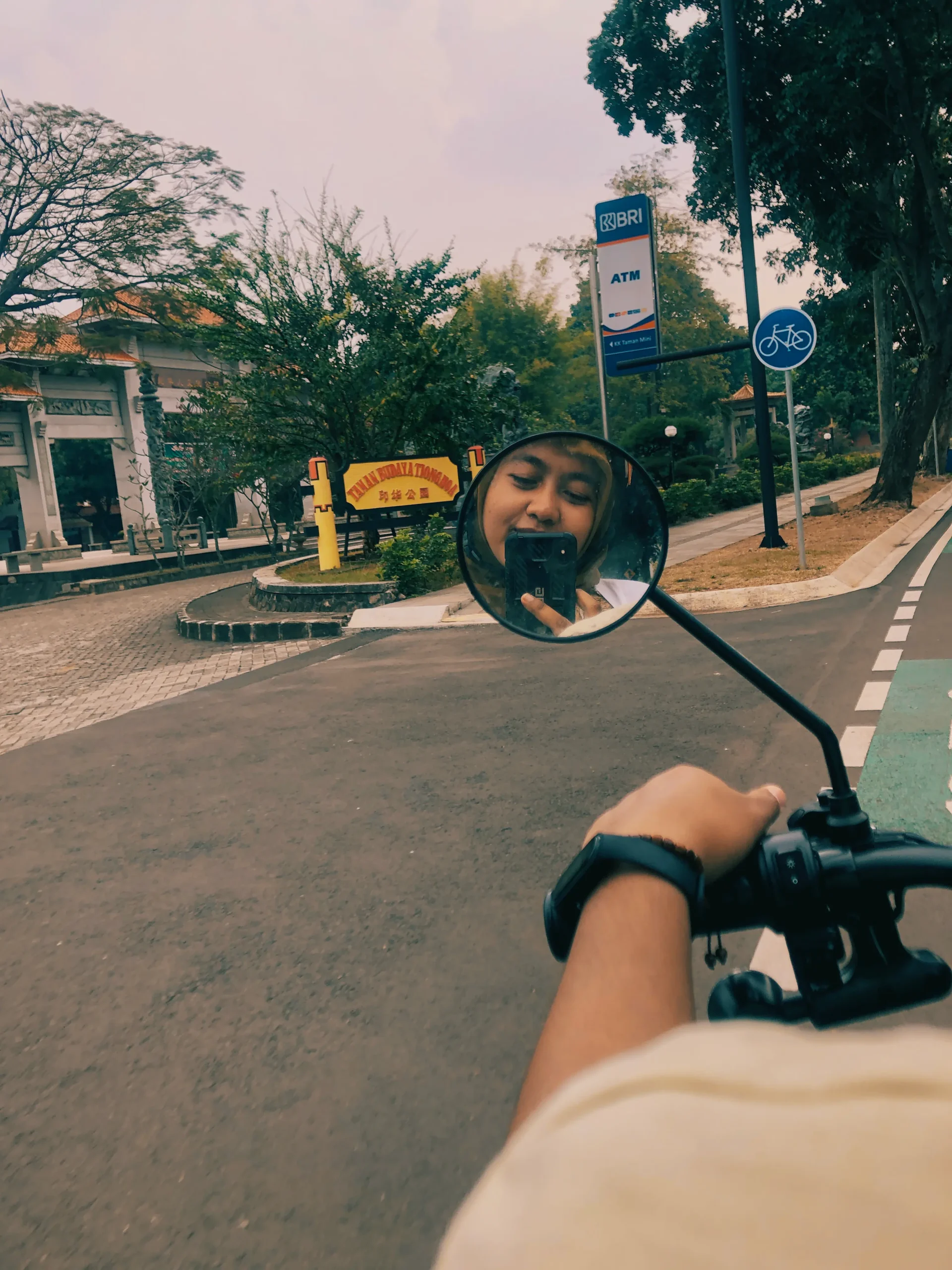 Lulu Takes a Mirror Photo on Motorbike in TMII
